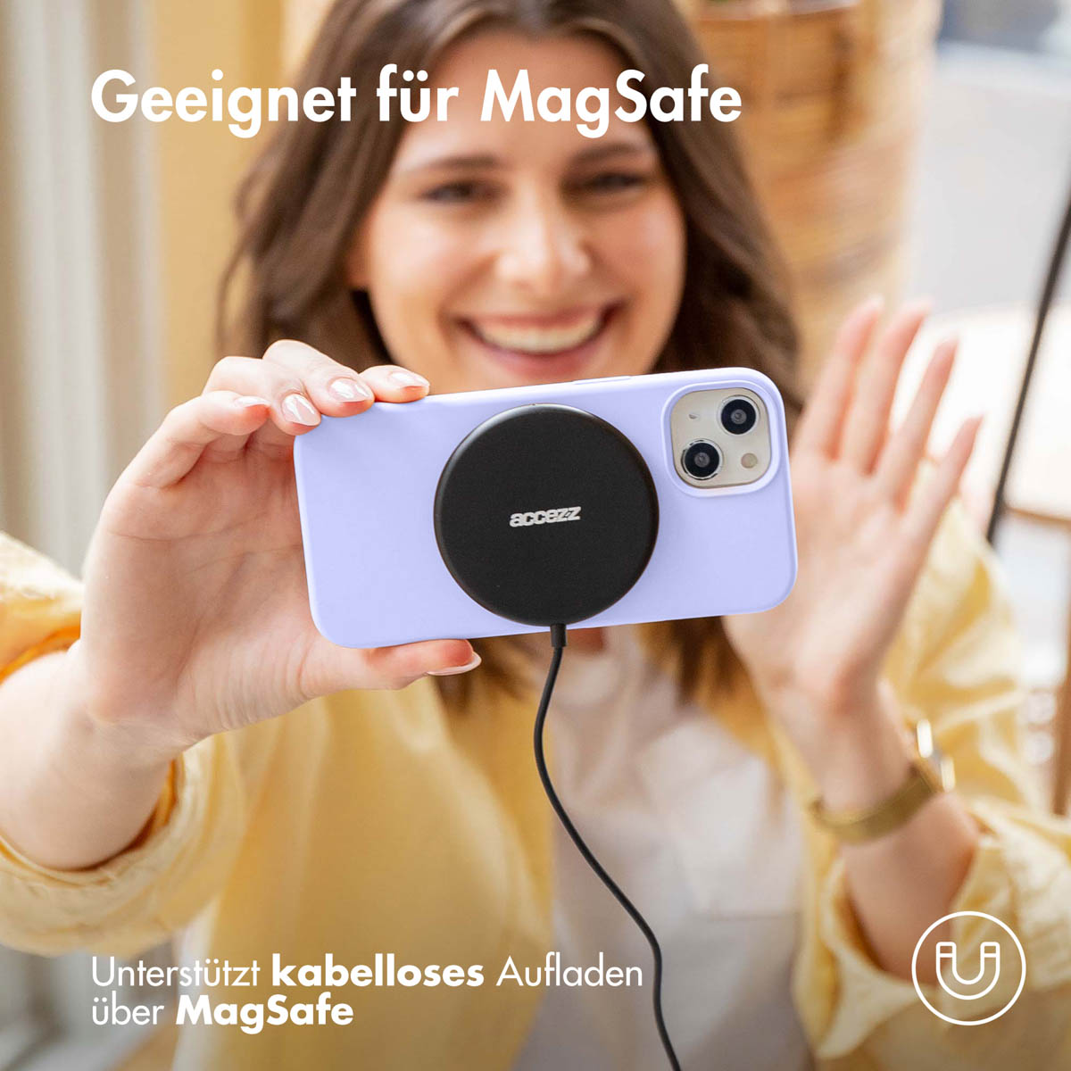 Geef jouw smartphone een strakke én verzorgde look! De Accezz Liquid Silicone Backcover met MagSafe is gemaakt van speciaal gegoten siliconen materiaal en heeft een schokabsorberende werking. Daarnaast voorkomt de microfiber voering krassen op de achterkant jouw toestel. Dankzij de ingebouwde MagSafe functie, maak je gemakkelijk gebruik van MagSafe producten. Zodra het tijd is om jouw telefoon op te laden, kun je het hoesje gewoon om het toestel laten zitten en je MagSafe-oplader op je telefoon klikken. Daarnaast zit het hoesje mooi aangesloten om jouw telefoon. Dankzij het luxe en slanke ontwerp behoudt jouw toestel zijn design. Geschikt voor MagSafe MagSafe is een techniek waarmee accessoires magnetisch aan je telefoon gekoppeld worden. Dit product ondersteunt MagSafe technologie. Dat betekent dat MagSafe producten altijd precies goed op jouw smartphone klikken. Op deze manier maak je op een optimale manier gebruik van een MagSafe draadloze oplader en klikt een MagSafe kaarthouder altijd op de perfecte plek op je telefoon. Ook kun je gebruik maken van een MagSafe powerbank of MagSafe telefoonhouder. Stijlvol design De Accezz Liquid Silicone Backcover met MagSafe is vervaardigd van stevig siliconen materiaal en heeft een schokabsorberende werking. Daarnaast voorkomt de microfiber voering krassen op jouw toestel. Dit hoesje klik je gemakkelijk vast en zit mooi aangesloten om jouw telefoon. Dankzij het luxe en slanke ontwerp behoudt jouw toestel zijn slanke vormgeving. Op maat gemaakt voor je smartphone Het hoesje is op maat gemaakt voor jouw smartphone en sluit naadloos aan op het toestel. In de hoes zijn alle uitsparingen en knoppen verwerkt. Zo zijn de poorten volledig toegankelijk en zijn alle knoppen eenvoudig te bedienen. Waarom de Accezz Liquid Silicone Backcover met MagSafe? * Vervaardigd van stevig siliconen materiaal * Heeft een schokabsorberende werking * Ondersteunt MagSafe technologie * Ontworpen met een matte, zachte coating * De microfiber voering voorkomt krassen op de achterkant van het toestel * Voor een strakke, verzorgde look * Inclusief 1 jaar garantie Een strakke look voor jouw smartphone en gemakkelijk gebruik maken van MagSafe? Bestel dan de Accezz Silicone Backcover MagSafe! Tip: Voor een optimale bescherming van jouw smartphone combineer je deze backcover met de Selencia Gehard Glas screenprotector.