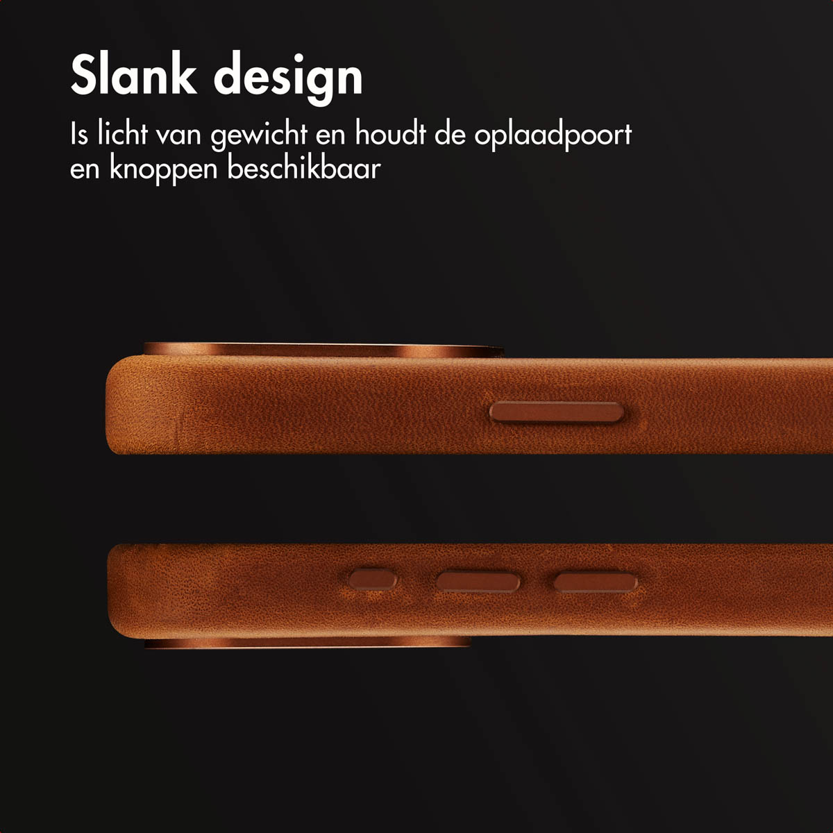 Zowel jouw smartphone beschermen als hem een strakke look geven? De Accezz Vintage Leather Backcover met MagSafe is gemaakt van echt leder en geeft jouw smartphone een stoere uitstraling in een handomdraai. Met deze hoes is jouw telefoon beschermd tegen alledaagse schade van vallen en stoten. Gemaakt van echt leer De Vintage Leather Backcover van Accezz is gemaakt van echt leer, wat zorgt voor een rustieke en stijlvolle uitstraling. Na verloop van tijd krijgt dit echte leer meer karakter en wordt het alleen maar mooier! Omdat leer een natuurlijk materiaal is, heeft elk hoesje zijn eigen unieke structuur. Het hoesje is licht van gewicht en de oplaadpoort en knoppen blijven toegankelijk. Geschikt voor MagSafe accessoires MagSafe is een techniek waarmee accessoires magnetisch aan je smartphone gekoppeld worden. Heeft jouw smartphone MagSafe? Dan kun je met deze backcover jouw smartphone nog steeds draadloos opladen. Daarnaast ondersteunt de Accezz Vintage Leather Backcover het koppelen van andere MagSafe accessoires. Ook wanneer jouw toestel geen MagSafe ingebouwd heeft, kun je dankzij deze hoes gebruikmaken van verschillende MagSafe accessoires, zoals een MagSafe-kaarthouder of MagSafe-telefoonhouder. Dagelijkse bescherming voor jouw telefoon Dankzij de Vintage Leather Backcover is jouw smartphone goed beschermd tegen schade van vallen en stoten. De verhoogde randen rondom de display en camera zorgen ervoor dat deze niet in aanraking komen met het oppervlak wanneer je jouw telefoon neerlegt. De binnenkant van het hoesje is gemaakt van zacht microvezel. Zo is ook de achterkant van jouw toestel goed beschermd tegen krasjes en stof. Waarom de Accezz Vintage Leather Backcover met MagSafe? * Gemaakt van stijlvol, echt leer * Ondersteunt MagSafe technologie * Verhoogde randen rondom de display en camera voor extra bescherming * De microvezel voering voorkomt krassen op de achterkant van het toestel * Zorgt voor een strakke, unieke look voor jouw smartphone * Inclusief 1 jaar garantieJouw smartphone goed beschermen én hem een unieke, strakke look geven? Ga dan voor de Accezz Vintage Leather Backcover met MagSafe!