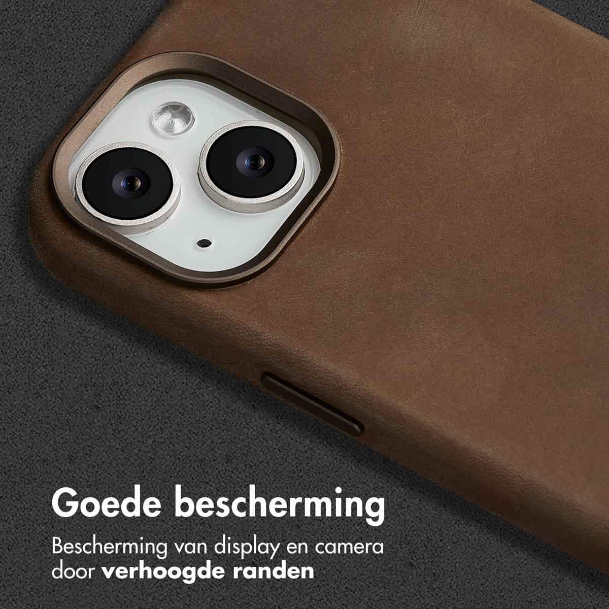 Zowel jouw smartphone beschermen als hem een strakke look geven? De Accezz Vintage Leather Backcover met MagSafe is gemaakt van echt leder en geeft jouw smartphone een stoere uitstraling in een handomdraai. Met deze hoes is jouw telefoon beschermd tegen alledaagse schade van vallen en stoten. Gemaakt van echt leer De Vintage Leather Backcover van Accezz is gemaakt van echt leer, wat zorgt voor een rustieke en stijlvolle uitstraling. Na verloop van tijd krijgt dit echte leer meer karakter en wordt het alleen maar mooier! Omdat leer een natuurlijk materiaal is, heeft elk hoesje zijn eigen unieke structuur. Het hoesje is licht van gewicht en de oplaadpoort en knoppen blijven toegankelijk. Geschikt voor MagSafe accessoires MagSafe is een techniek waarmee accessoires magnetisch aan je smartphone gekoppeld worden. Heeft jouw smartphone MagSafe? Dan kun je met deze backcover jouw smartphone nog steeds draadloos opladen. Daarnaast ondersteunt de Accezz Vintage Leather Backcover het koppelen van andere MagSafe accessoires. Ook wanneer jouw toestel geen MagSafe ingebouwd heeft, kun je dankzij deze hoes gebruikmaken van verschillende MagSafe accessoires, zoals een MagSafe-kaarthouder of MagSafe-telefoonhouder. Dagelijkse bescherming voor jouw telefoon  Dankzij de Vintage Leather Backcover is jouw smartphone goed beschermd tegen schade van vallen en stoten. De verhoogde randen rondom de display en camera zorgen ervoor dat deze niet in aanraking komen met het oppervlak wanneer je jouw telefoon neerlegt. De binnenkant van het hoesje is gemaakt van zacht microvezel. Zo is ook de achterkant van jouw toestel goed beschermd tegen krasjes en stof. Waarom de Accezz Vintage Leather Backcover met MagSafe? * Gemaakt van stijlvol, echt leer * Ondersteunt MagSafe technologie * Verhoogde randen rondom de display en camera voor extra bescherming * De microvezel voering voorkomt krassen op de achterkant van het toestel * Zorgt voor een strakke, unieke look voor jouw smartphone * Inclusief 1 jaar garantieJouw smartphone goed beschermen én hem een unieke, strakke look geven? Ga dan voor de Accezz Vintage Leather Backcover met MagSafe!