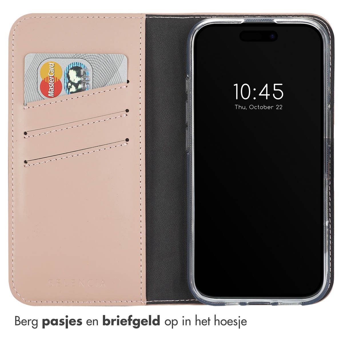 Selencia Echt Leren Bookcase Apple iPhone 16 Plus – Dusty Pink