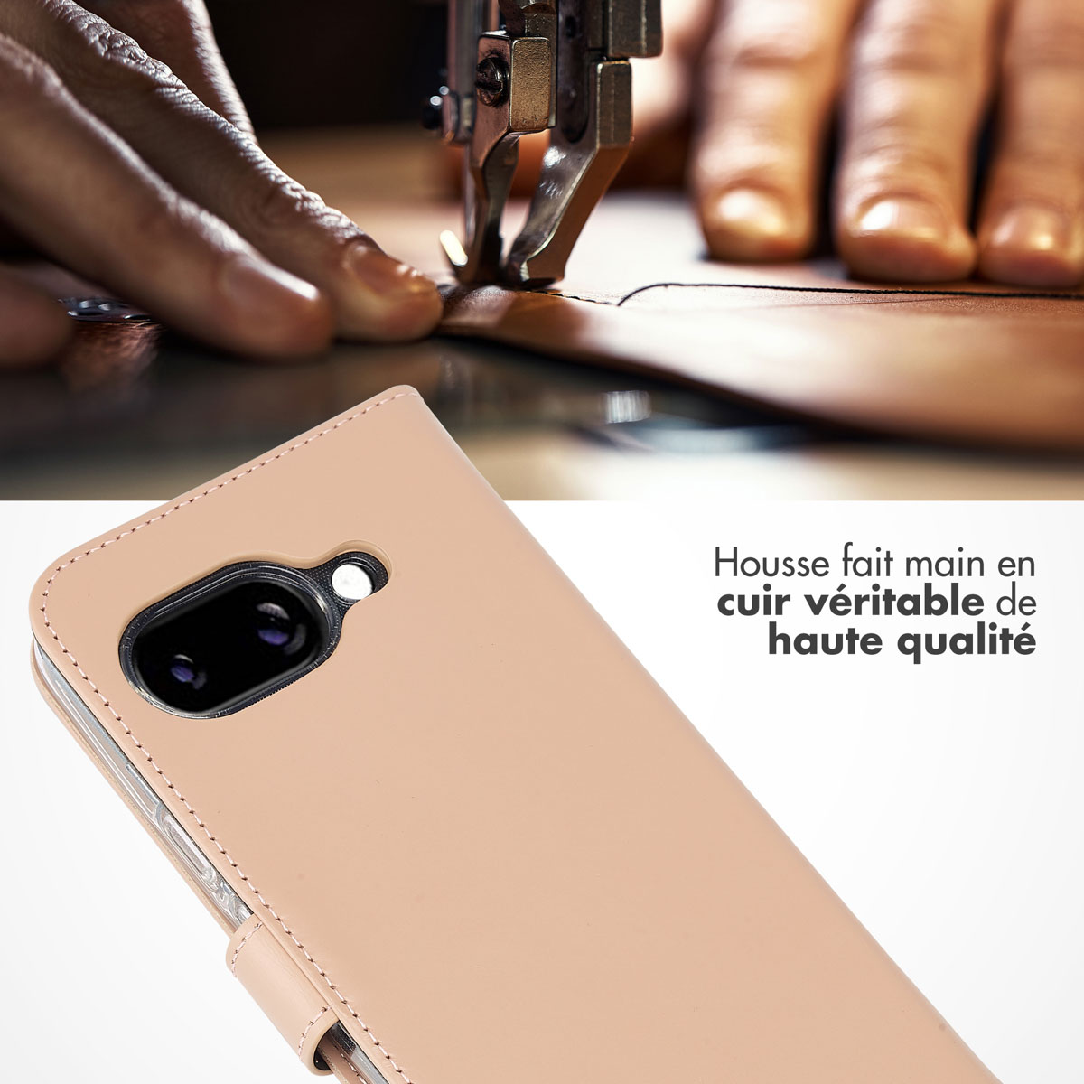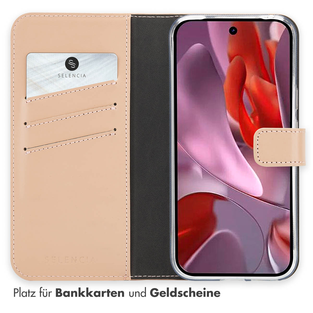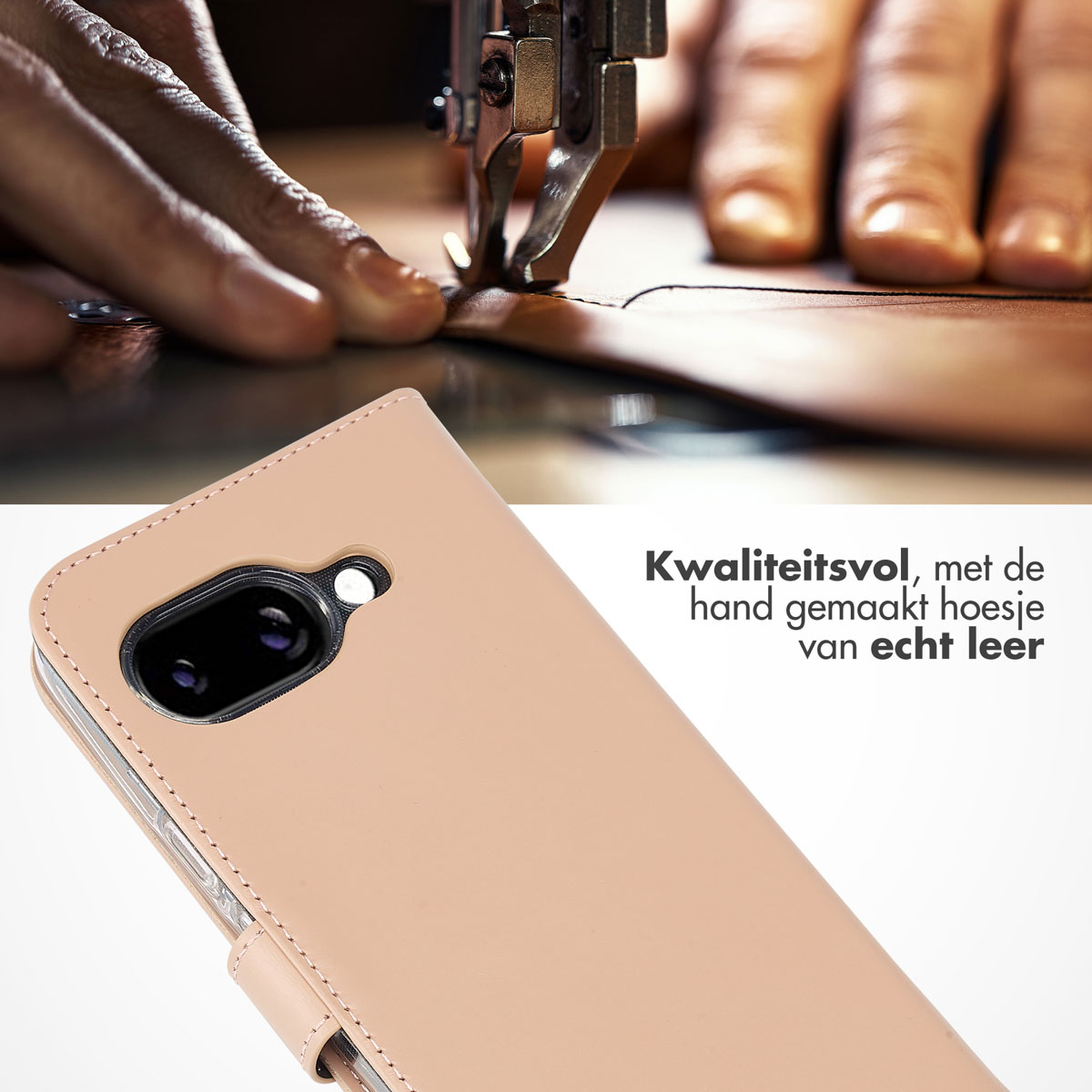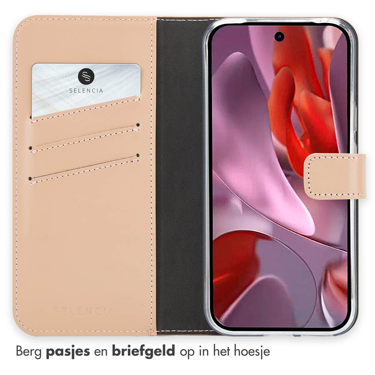 Selencia Echt Leren Bookcase Google Pixel 9A – Dusty Pink