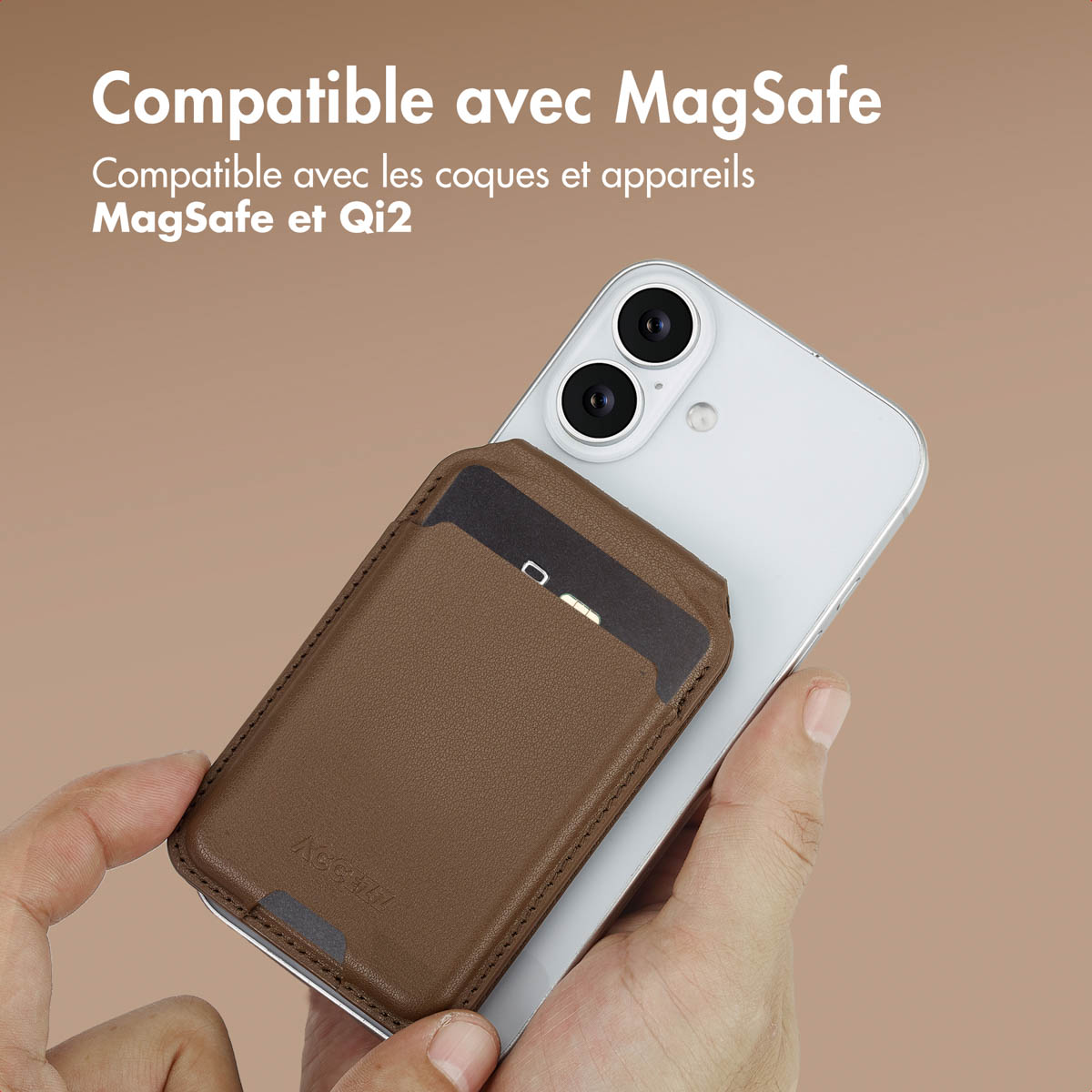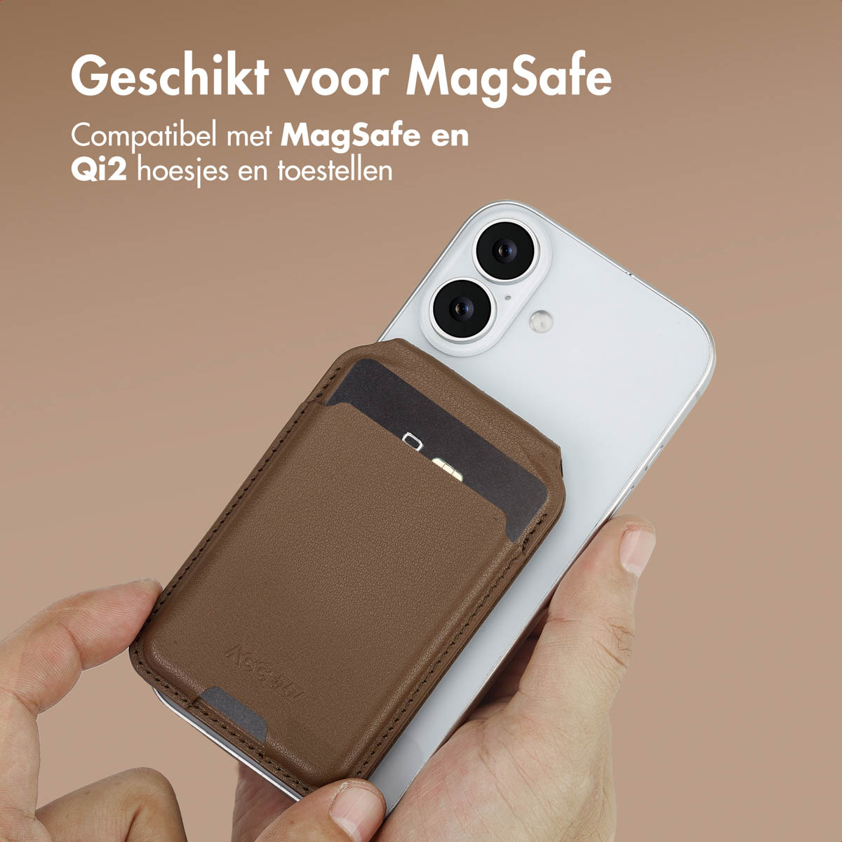 Accezz Leren Wallet met standaard – Geschikt voor MagSafe en Qi2 – Coffee Brown