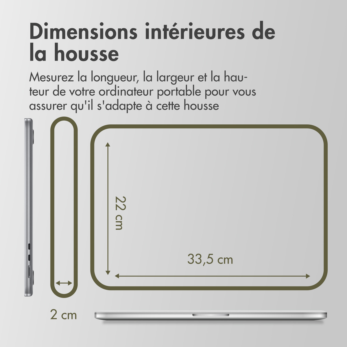 De Laptop Sleeve van Accezz is een praktische en beschermende hoes voor het meenemen van jouw laptop. Of je nou met de trein, fiets of auto naar je werk gaat; deze laptop hoes zorgt ervoor dat je jouw laptop onbeschadigd weer openklapt op kantoor. Beschermend materiaal Zowel de binnen- als buitenkant van de sleeve voelt zacht aan. De hoes is gemaakt van neopreen en is daarom licht van gewicht, flexibel en kreukt niet;  altijd een professionele uitstraling, waar je ook bent. Daarnaast is de hoes spatwaterdicht. Strak en slank ontwerp De laptop hoes heeft een strakke look en is in iedere situatie de perfecte beschermlaag voor jouw laptop. Langs de buitenkant vind je een stijlvolle, lederen afwerking. De hoes heeft een slank ontwerp en voegt daarom weinig volume toe aan jouw laptop. Je neemt hem dus gemakkelijk mee in je (laptop)tas! Stevige ritssluiting Om de hoes veilig af te sluiten, beschikt hij over een stevige ritssluiting. De ritstrekker, met het Accezz logo, zorgt ervoor dat je de hoes eenvoudig open en dicht maakt. Zo pak je jouw laptop er altijd makkelijk en snel bij wanneer je hem nodig hebt. Geschikt voor laptops van 13-14 inch Let op! Deze sleeve is geschikt voor laptops met een schermgrootte van 13 tot en met 14  inch. Sommige laptops hebben een dikkere rand rondom het scherm. Meet daarom jouw laptop goed op zodat je zeker weet dat je de juiste maat bestelt. Het formaat van de binnenkant is 22 x 33,5 x 2 cm. Waarom de Accezz Laptop Sleeve? * Goede alledaagse bescherming voor jouw laptop * Perfect voor 13-14 inch laptops * Heeft een binnenmaat van 22 x 33,5 x 2 cm * Gemaakt van zacht en rekbaar neopreen * Een stijlvolle, lederen afwerking rondom de hoes * Heeft een stevige ritssluiting * Inclusief 1 jaar garantieAltijd een professionele look én jouw laptop goed beschermen tegen krassen en stoten? Ga dan voor deze Accezz Laptop Sleeve!