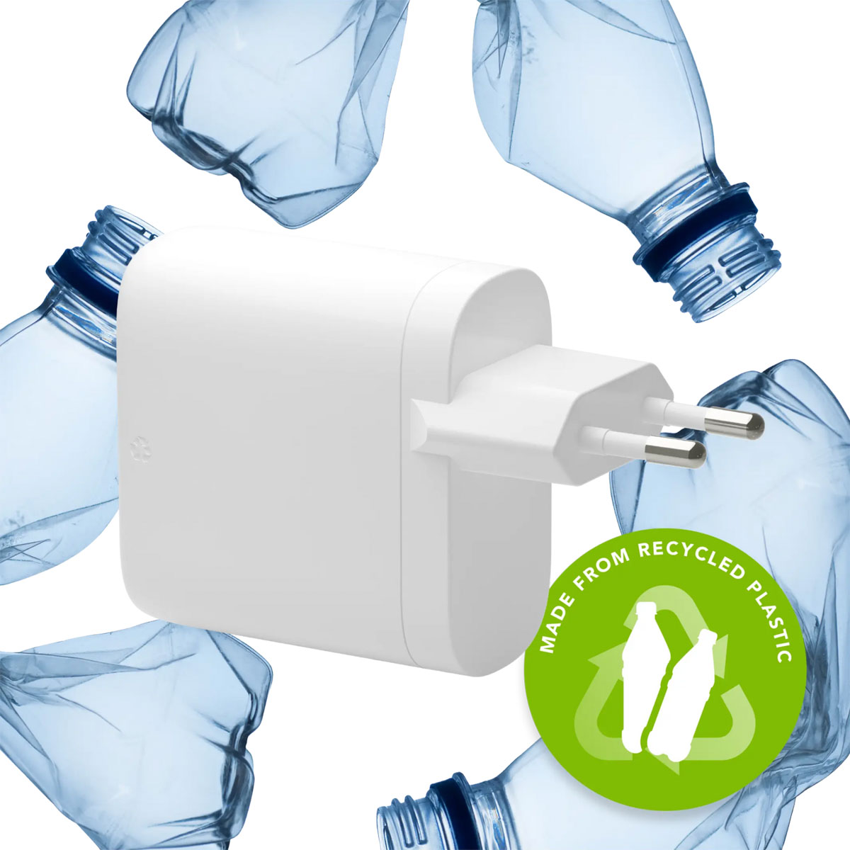 Deze duurzame en compacte 65 Watt USB-C lader van dbramante1928 biedt een snelle, veilige oplaadoplossing voor je bijvoorbeeld je laptop, telefoon of tablet. Gemaakt van 100% gerecycled materiaal, past deze lader perfect in je dagelijkse routine, zowel thuis als onderweg. USB-C 65 WattMet een vermogen van 65 Watt is de USB-C-poort krachtig genoeg voor het snel opladen van apparaten zoals smartphones, tablets en zelfs grotere laptops. Zo kun je altijd vertrouwen op een efficiënte laadoplossing voor al je oplaadbehoeften, waar je ook bent. GaN-technologie en snelladenGeniet van de voordelen van GaN-technologie, die een efficiënte energieoverdracht en compact formaat biedt zonder oververhitting. Daarnaast zorgt de USB-C Power Delivery-technologie voor snel opladen van al je devices. Zo laad je de gemiddelde iPhone of Samsung telefoon tot wel 50% in slechts 30 minuten. Ideaal voor een krachtige, veilige en energiezuinige laadervaring, ook bij intensief gebruik. Recycled, recyclable, re-charge!Deze lader is gemaakt van 100% gerecycled plastic en is volledig recyclebaar, waardoor hij milieuvriendelijk en toekomstgericht is. Dankzij het gebruik van ultrasoon lassen is hij niet alleen sterk, maar ook gemakkelijk te recyclen. Origineel dbramante1928 productdbramante1928 is een Deens designmerk dat zich specialiseert in bescherming en accessoires voor mobiele apparaten. Sinds 2011 combineren ze kwaliteit, functionaliteit en stijl met een sterke focus op duurzaamheid. Hun producten, variërend van telefoonhoesjes tot laptoptassen, worden gemaakt van GRS-gecertificeerd gerecycled plastic of upcycled volnerfleer, geproduceerd in een volledig CO2-neutrale fabriek. Bescherm je apparaat en bescherm de planeet! Waarom de re-charge | Wall Charger – USB-C 65 Watt – Wit? * 1x USB-C-poort 65 Watt * Ondersteuning voor Power Delivery * GaN-technologie * Compact en reisvriendelijk * 100% gerecycled en recyclebaar * Ultrasoon gelast * Origineel dbramante1928 product * Met 1 jaar garantie Kies voor de re-charge Wall Charger van dbramante1928 voor een betrouwbare en groene oplossing voor opladen.