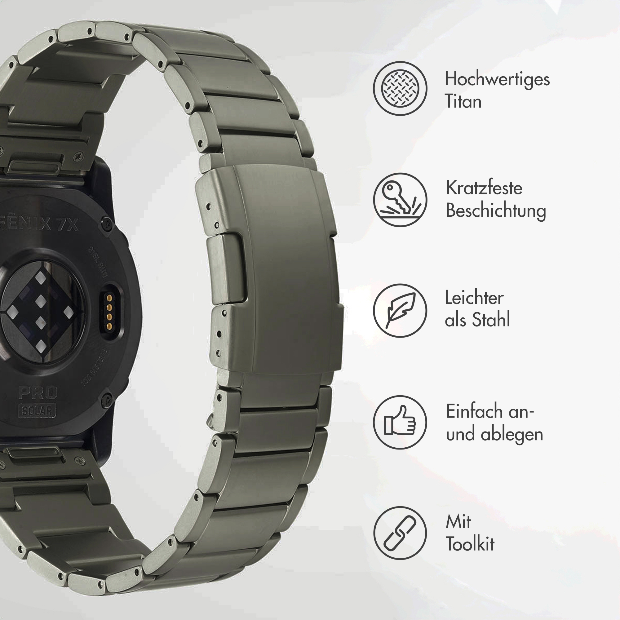 Accezz Mat Titanium bandje – Garmin 26 mm aansluiting – Titanium