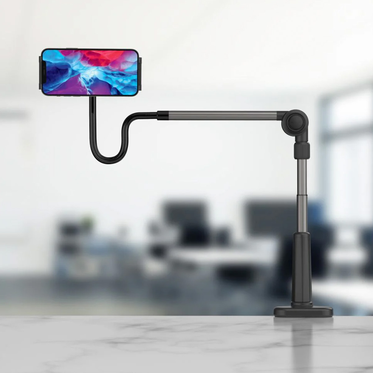 De FIXED Relax standaard, een standaard voor je tablet, e-reader of telefoon. Met deze in hoogte verstelbare standaard heb jij je handen vrij, of je nu een work-out aan het doen bent of een serie wilt kijken. Klem ‘m gemakkelijk vast aan je bureau, nachtkastje of tafel en geniet van handsfree gemak. Verstelbaar in meerdere hoogtes en hoekenTover je garage of woonkamer om in een fitnesslokaal, ga als echte chefkok aan de slag met een recept van het internet of duik voor het slapen gaan in een goed boek. Met de FIXED Relax standaard heb jij je handen vrij en kun je concentreren op wat je aan het doen bent. De standaard kan worden ingesteld op twee verschillende hoogtes en dankzij de flexibele zwanenhals creëer je telkens weer de perfecte kijkhoek. De met siliconen gevoerde clip zorgt ervoor dat jouw apparaat niet beschadigt. Eenmaal in de clip kan jouw tablet, telefoon of e-reader 360 graden worden gedraaid in portret- of landschapspositie. De veelzijdige FIXED Relax standaardVerander je tablet in een werkstation, volg recepten vanaf het internet of lees een boek op je e-reader. Wat je ook aan het doen bent, met de FIXED Relax standaard heb je in ieder geval je handen vrij. Ideaal voor digitale vergaderingen, het kijken van series of het opnemen van een video. Geschikt voor verschillende apparatenDe FIXED Relax standaard is geschikt voor tablets, e-readers en telefoons met een minimale breedte van 125 mm en een maximale breedte van 215 mm. (7 – 13 inch) De clip van de Relax standaard klemt veilig aan elke rand tot 7.5 centimeter dik. Dankzij de verstelbare, aluminium arm kan jouw tablet, e-reader of telefoon tot 92 cm hoog worden geplaatst. Waarom de FIXED Relax standaard? * Verstelbaar in twee verschillende hoogtes * 360 graden draaibaar * Gemaakt van geborsteld aluminium * De met siliconen gevoerde clip zorgt ervoor dat jouw apparaat niet beschadigt * Je houdt je handen vrij * Geschikt voor tablets, e-readers en telefoons * Afmetingen opgevouwen: 32 x 12.8 cm * Inclusief 1 jaar garantie De FIXED Relax Standaard is een handig accessoire voor zowel thuis als op kantoor, bestel ‘m vandaag nog!